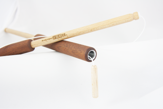 ハンドル部分にはマホガニー材、ボディにはビーチと2種類の木材を使用、またハンドル部分の内側にはアルミを使用し、耐久性向上とおもりのすべりの良さを実現しています。